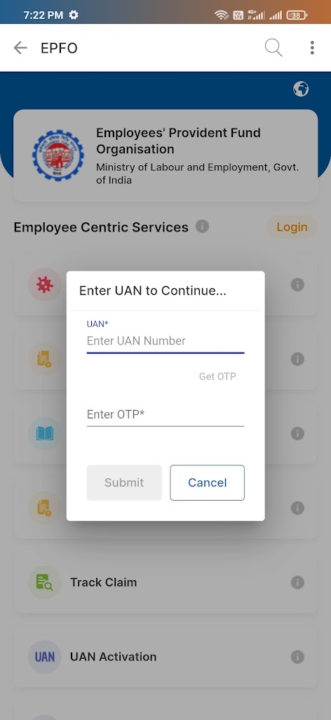 ⃣    প্রয়োজনীয় ক্ষেত্রে UAN নম্বর দিন এবং GET OTP বিকল্পে ক্লিক করুন