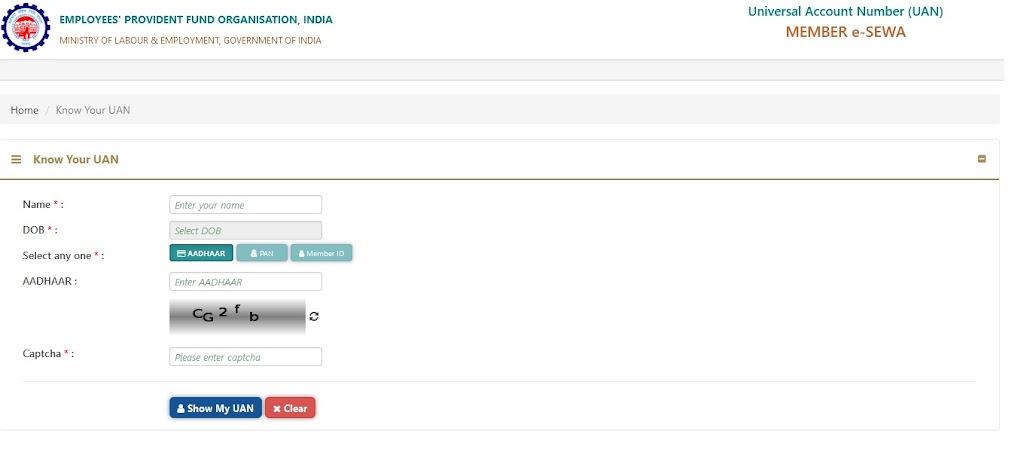 1. Member ID (PF no) or UAN number